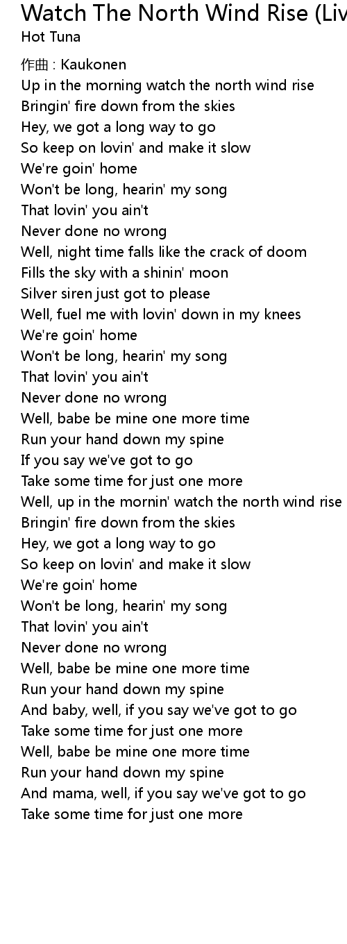| Song | Watch The North Wind Rise (Live Version) - Live Version |
