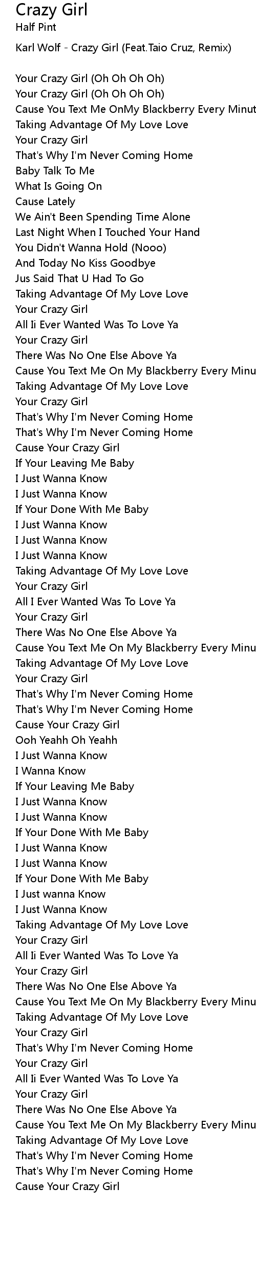 Your Crazy Girl |