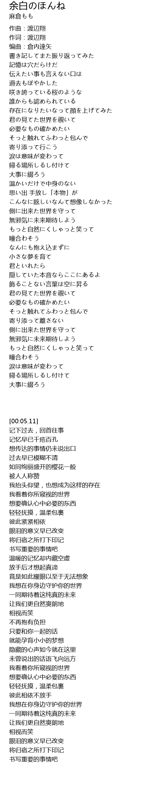 作词:渡辺翔 |