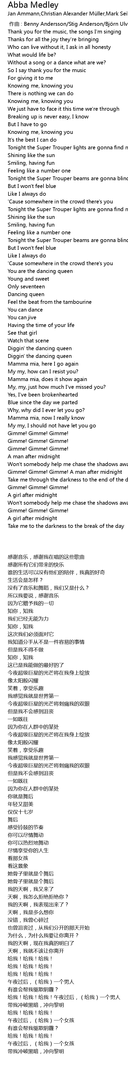 | [00:00.000] | zuò qǔ : Benny Andersson Stig Anderson Bj rn Ulvaeus |