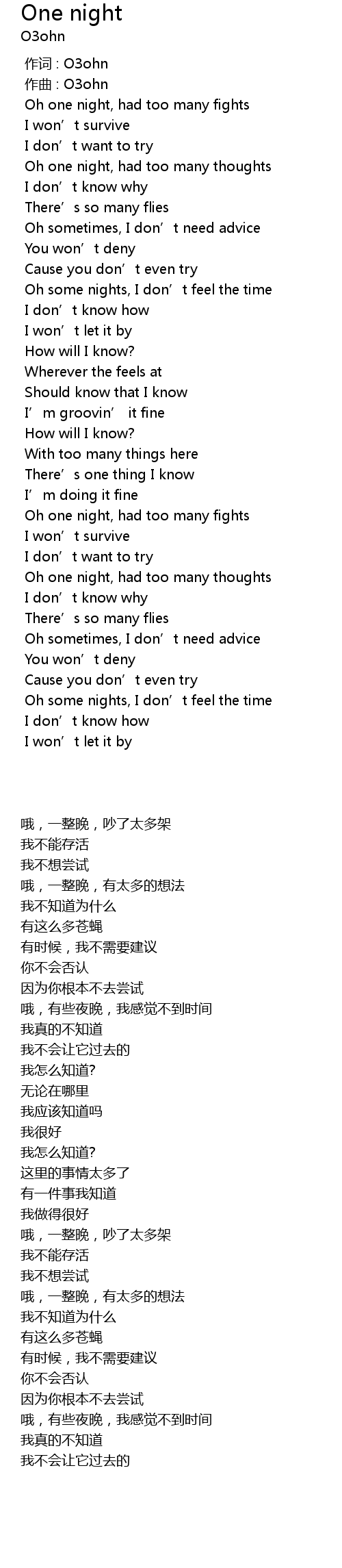 | [00:00.000] | 作词 : O3ohn |
