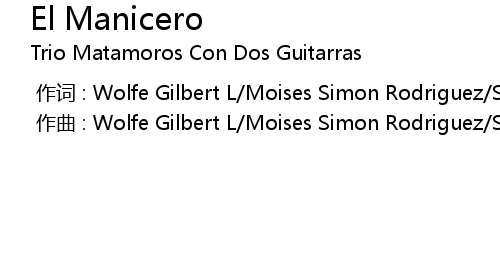 | [00:00.000] | 作词 : Wolfe Gilbert L/Moises Simon Rodriguez/Sunshine Marion |