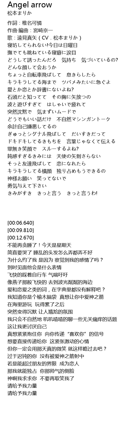 | [00:12.670] | 歌:遠見真矢(CV.松本まりか) |