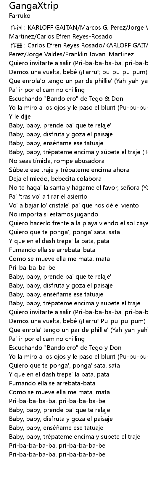 | [00:39.78] | Baby, baby, tre pateme encima y su bete el traje Farru! |