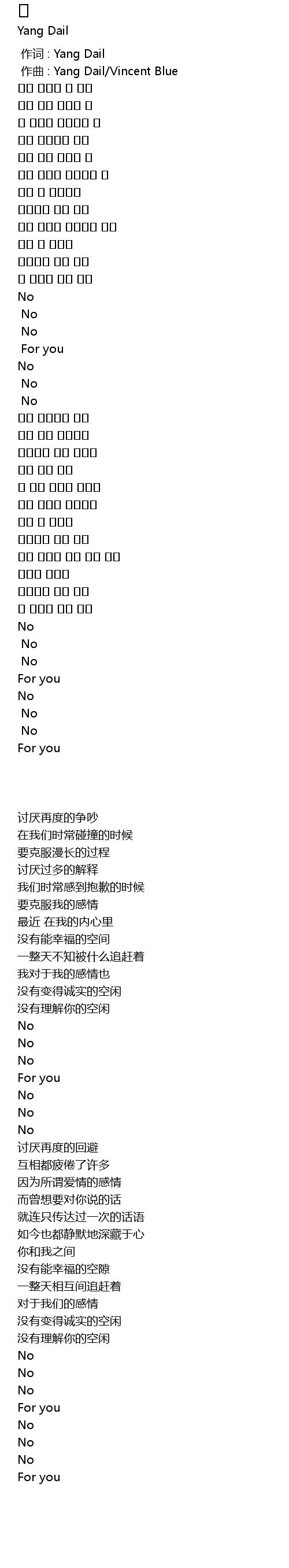 | [00:00.000] | 作词 : Yang Dail |