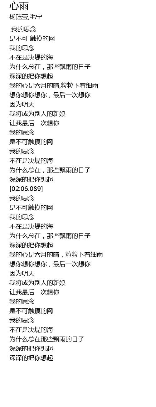 | [01:31.190] | wǒ de sī niàn |
