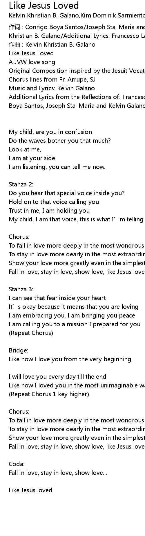 | 作词 : Conrigo Boya Santos/Joseph Sta. Maria and Kelvin Galano/Kelvin Khristian B. Galano/Additional Lyrics: Francesco Labuntog Dela Cruz | |