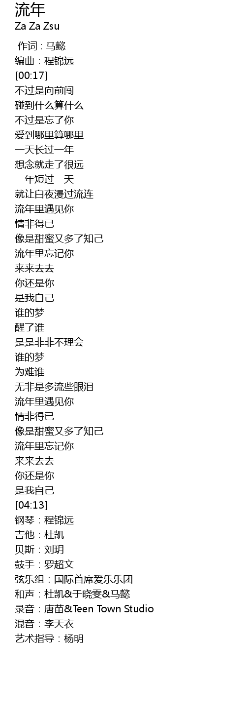 | [04:18] | 录音:唐苗&Teen Town Studio |
