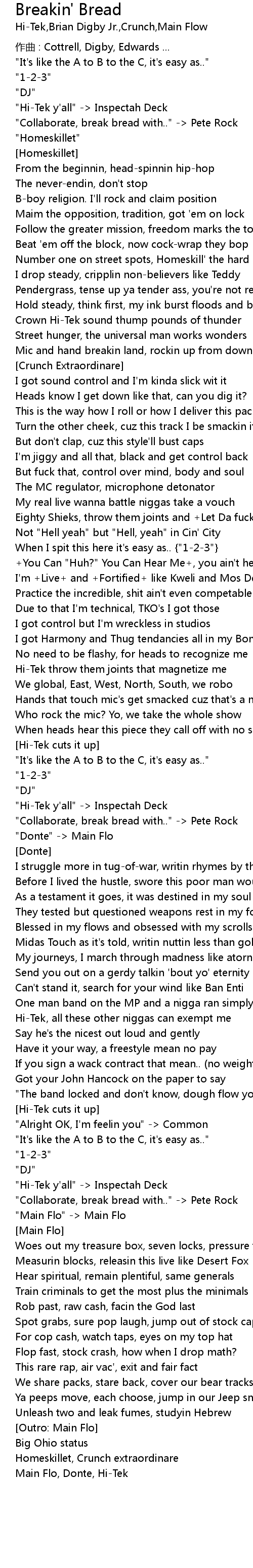| "Hi-Tek y'all" -> Inspectah Deck | |