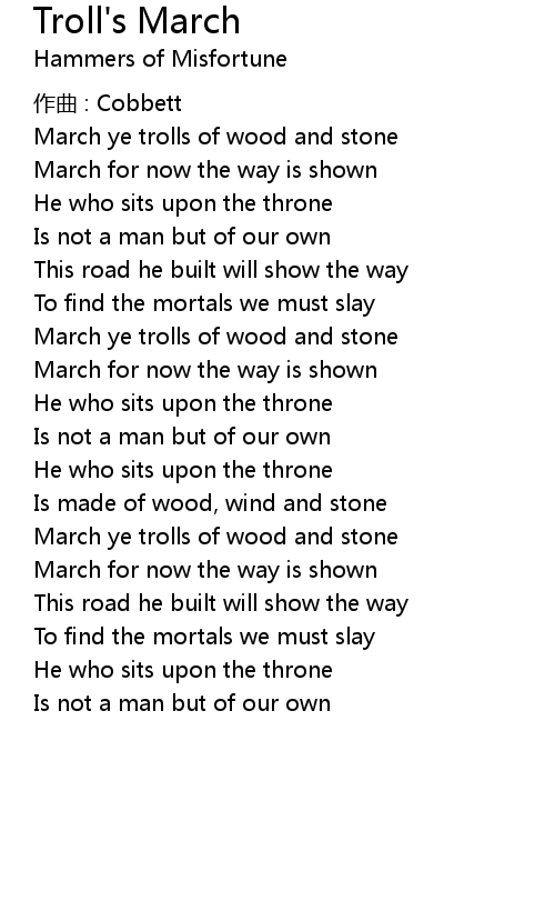 | March ye trolls of wood and stone | |