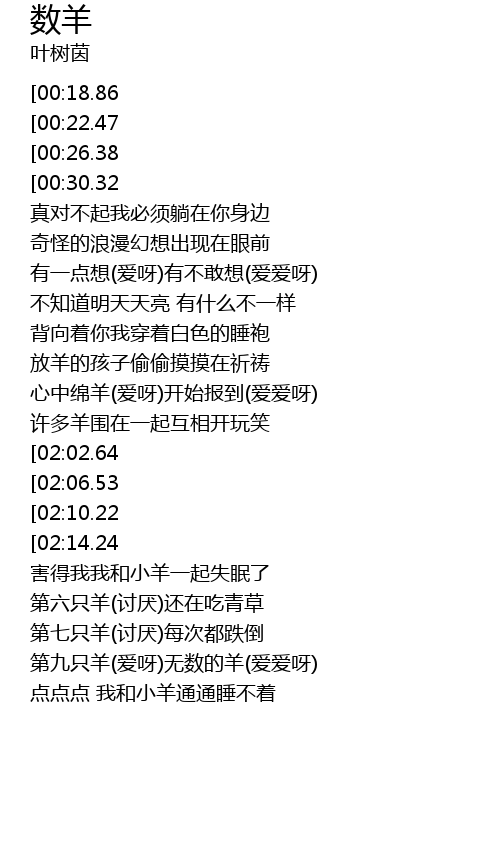 | [02:27.82] | 第九只羊(爱呀)无数的羊(爱爱呀) |