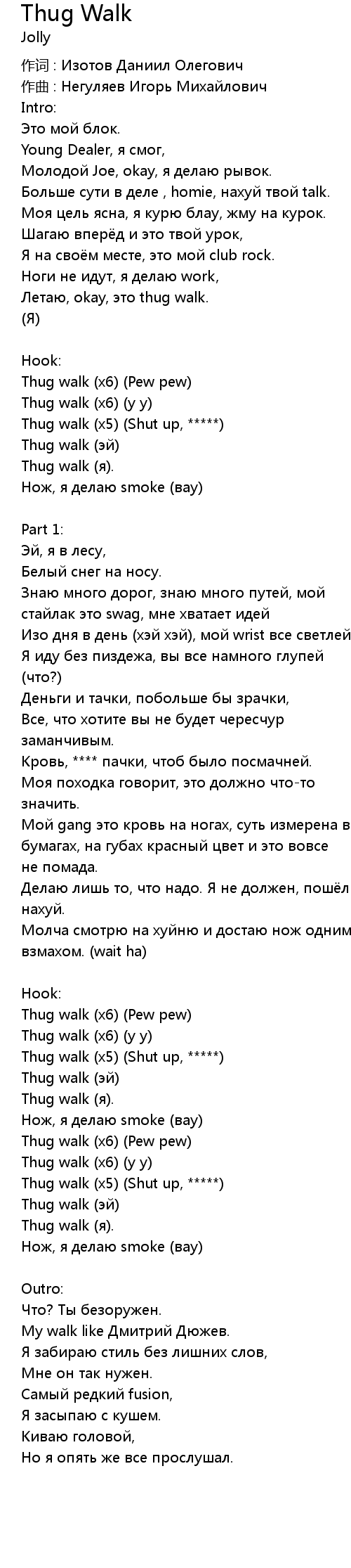 Thug walk (x5) (Shut up, *****) |