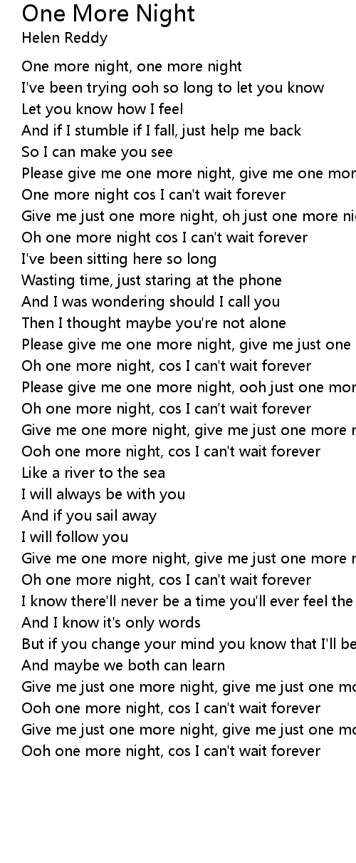 One more night, one more night |