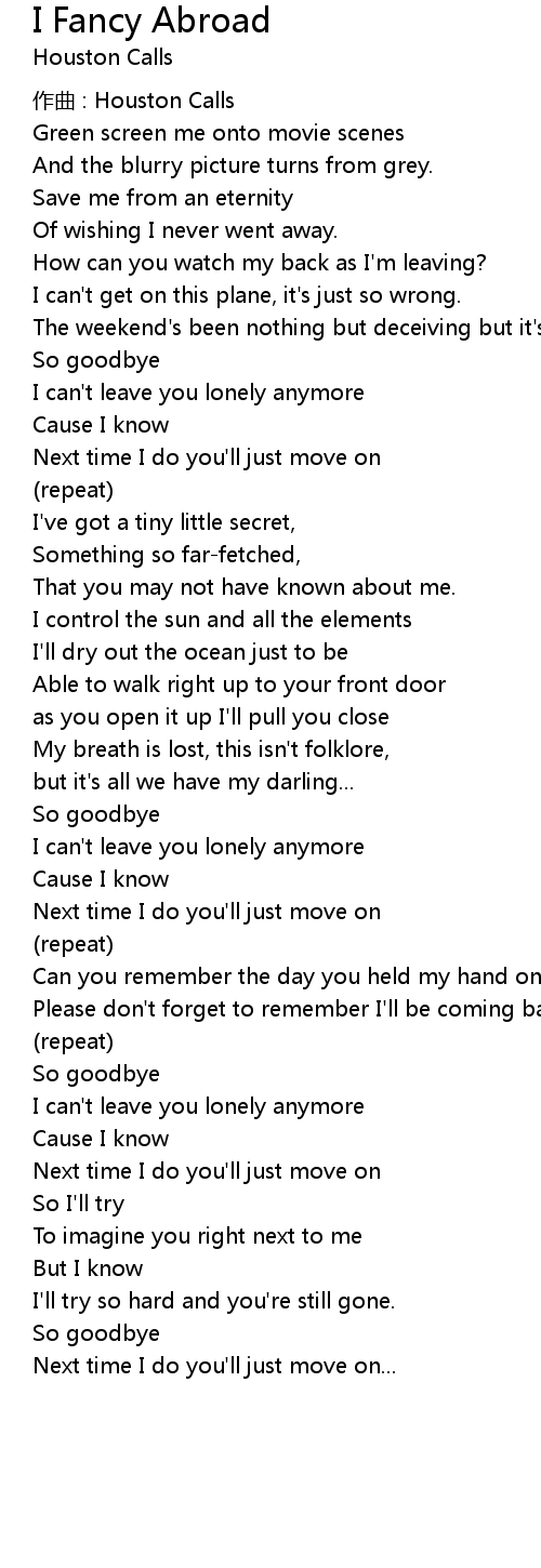 | Song | I Fancy Abroad |