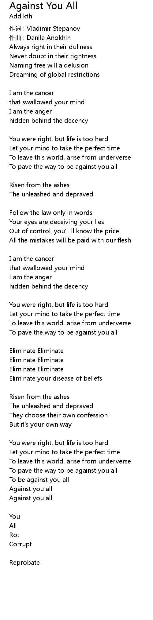 | Song | Against You All |