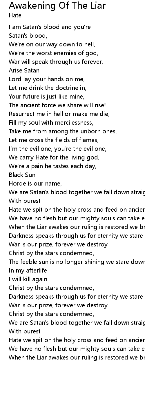 When the Liar awakes our ruling is restored we bring eternal night, |