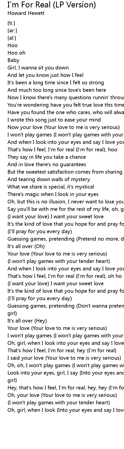 Hey, that's how I feel, I'm for real, hey, hey {I'm for real} |