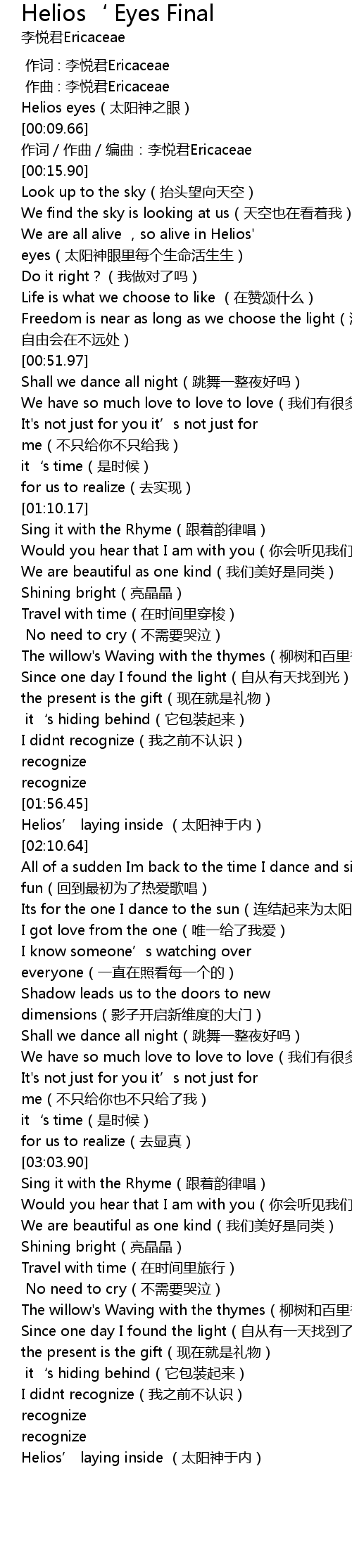 | [00:05.79] | Helios eyes tai yang shen zhi yan |