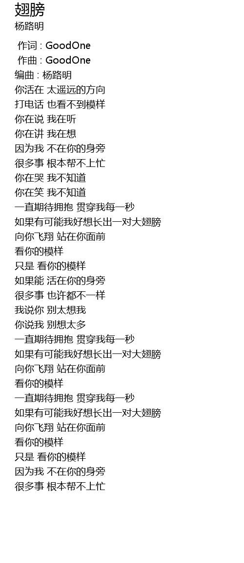 | [01:14.183] | 如果有可能我好想长出一对大翅膀 |