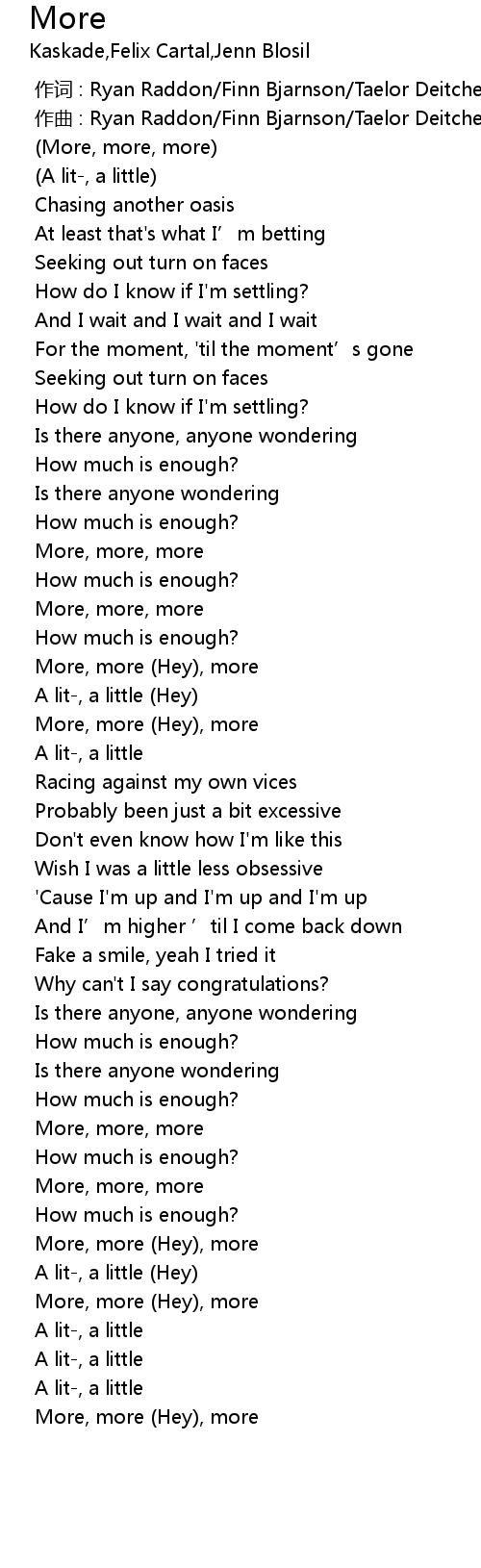 | [02:59.479] | More, more (Hey), more |