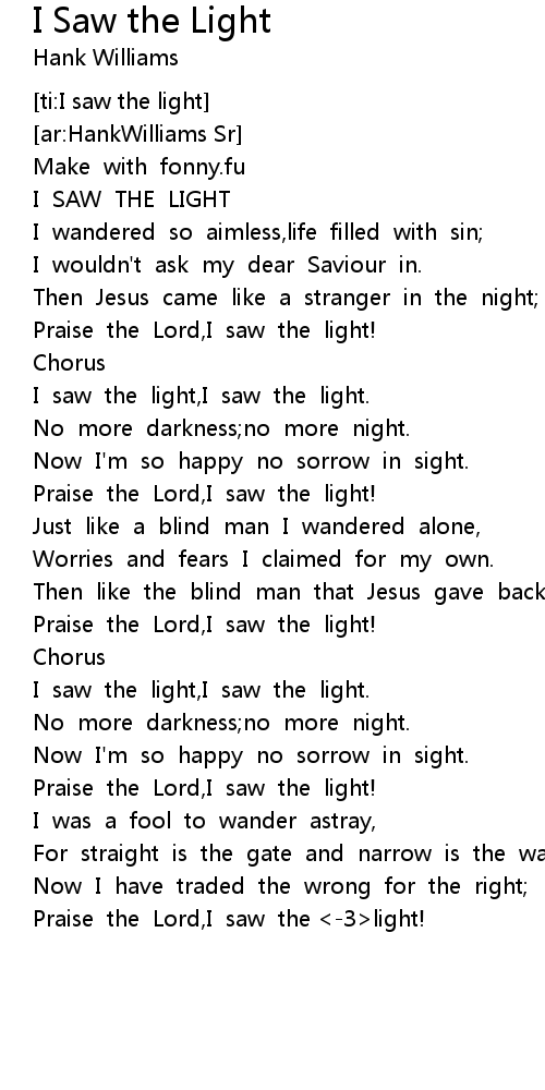 I saw the light,I saw the light. |