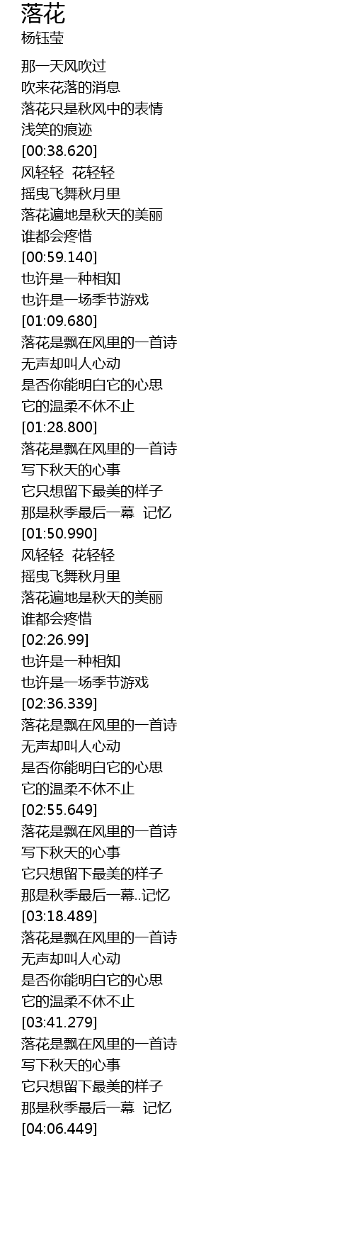 | [03:42.79] | 落花是飘在风里的一首诗 |