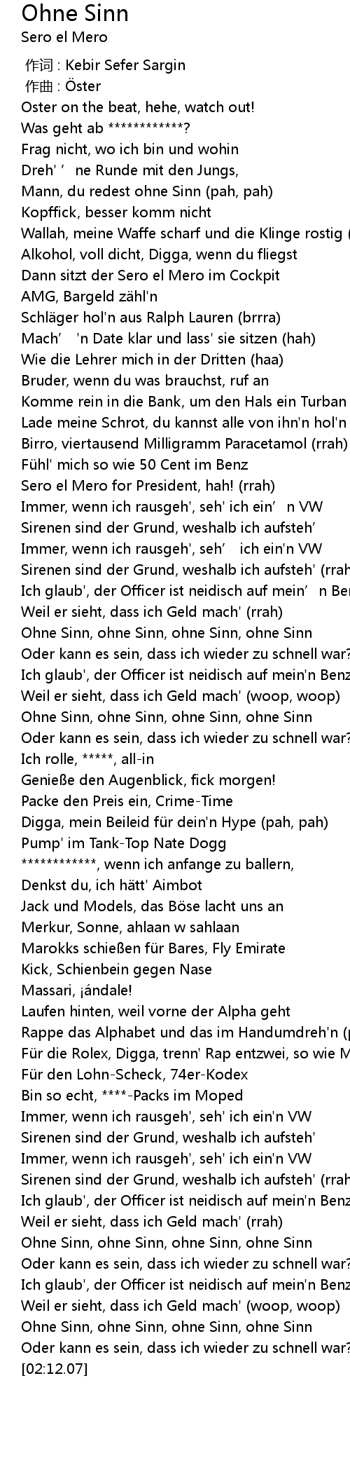 | [01:53.98] | Ohne Sinn, ohne Sinn, ohne Sinn, ohne Sinn |