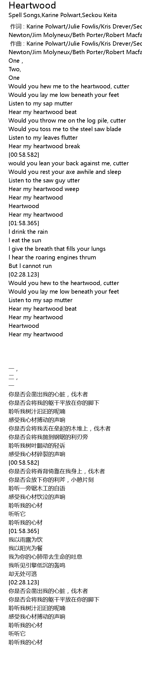 | [02:29.702] | Would you hew to the heartwood, cutter |