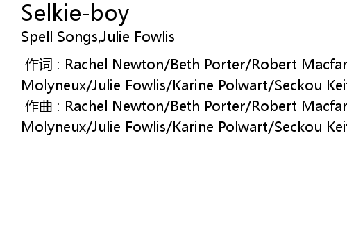 | [00:00.000] | 作曲 : Rachel Newton/Beth Porter/Robert Macfarlane/Jim Molyneux/Julie Fowlis/Karine Polwart/Seckou Keita/Jackie Morris/Kris Drever |