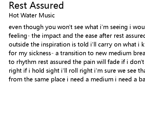 even though you won't see what i'm seeing i would love for you to feel what i'm feeling- the impact and the ease after rest assured the pain will fade right outside the inspiration is told i'll carry on what i know that is what i need for my sickness- a transition to new medium breakaway from the world and stick to rhythm rest assured the pain will fade if i don't walk blindside i'll roll right if i hold sight i'll roll right i'm sure we see that same way just not from the same place i need a medium i need a balance |