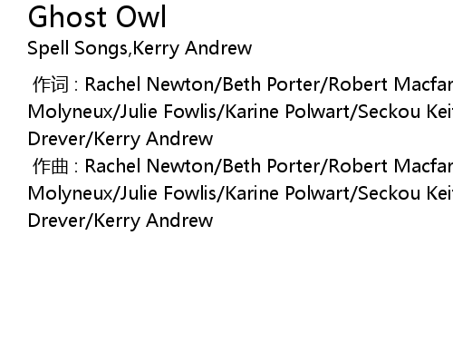 | [00:00.000] | 作词 : Rachel Newton/Beth Porter/Robert Macfarlane/Jim Molyneux/Julie Fowlis/Karine Polwart/Seckou Keita/Jackie Morris/Kris Drever/Kerry Andrew |