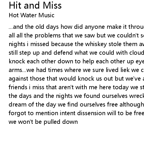 ...and the old days how did anyone make it through them that way we fought it all all the problems that we saw but we couldn't see straight...and for all the nights i missed because the whiskey stole them away we'd still wake up we'd still step up and defend what we could with clouded heads we'd turn around to knock each other down to help each other up eyes half shut with out-stretched arms...we had times where we sure lived liek we could never die we stood strong against those that would knock us out but we've all been down...and for all the friends i miss that aren't with me here today we still wake up after we dream of the days and the nights we found ourselves wrecked...we still wake up after we dream of the day we find ourselves free although blind at times we see never forgot to mention intent dissension will to be free we'll never be pulled down we won't be pulled down |