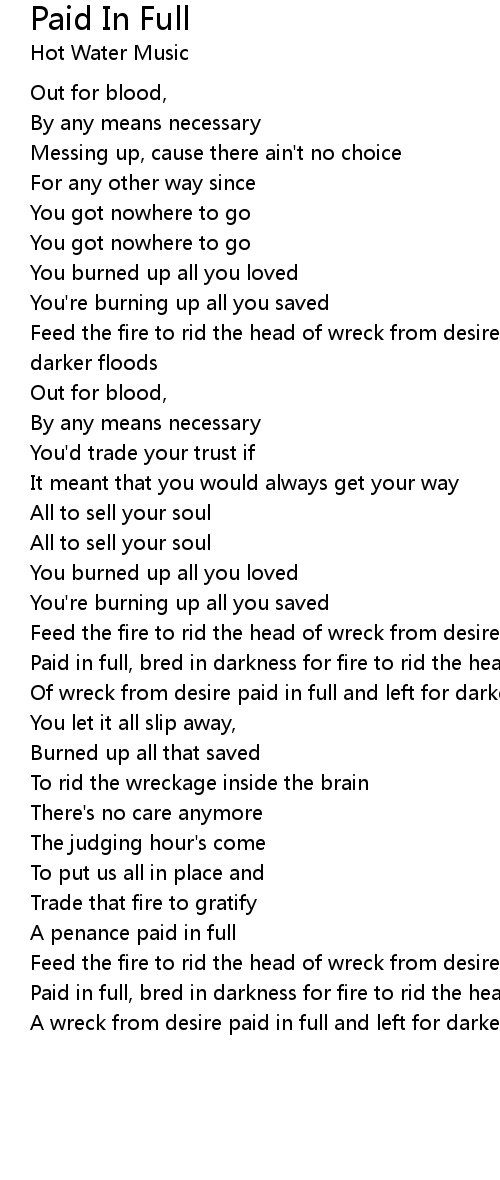 Paid in full, bred in darkness for fire to rid the head |