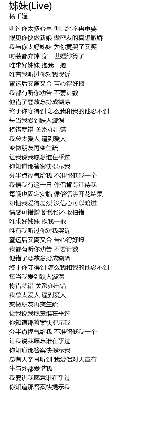 | [00:49.490] | 唯求好姊妹 抱我一抱 |