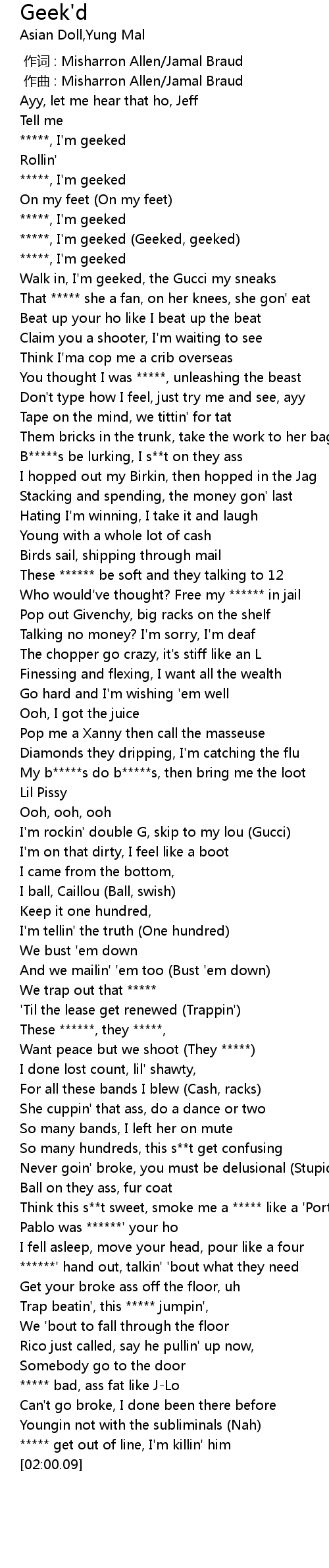 | [00:10.58] | *****, I'm geeked (Geeked, geeked) |