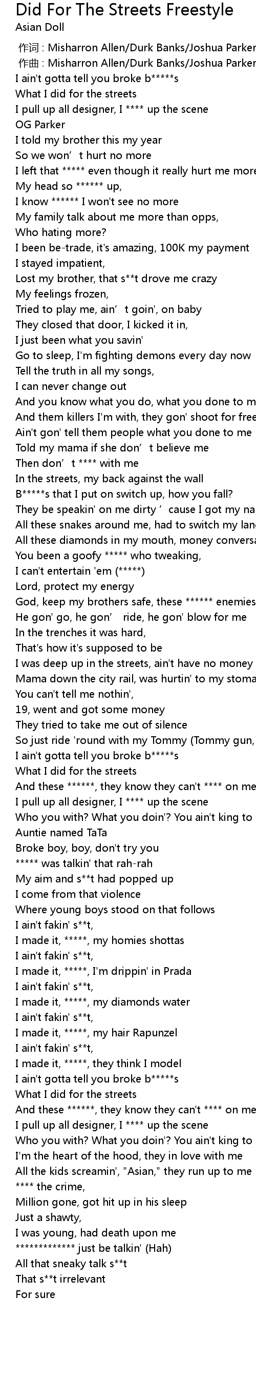 | [00:53.72] | B*****s that I put on switch up, how you fall? |