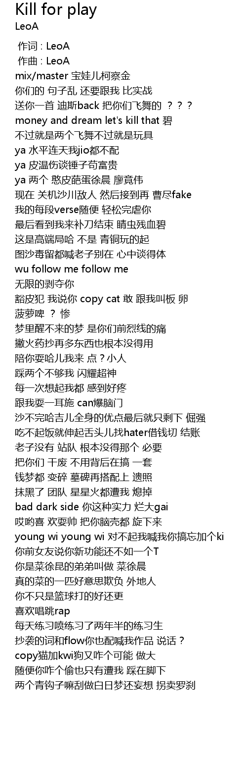 | [01:59.470] | 抄袭的词和flow你也配喊我作品 说话? |