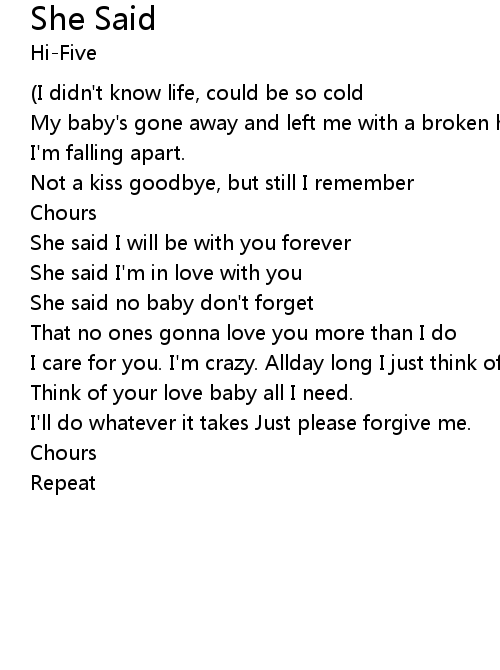 | She said no baby don't forget | |