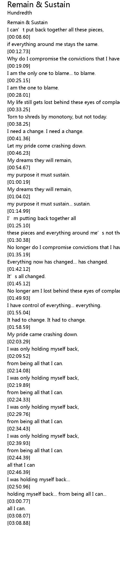 | [01:07.19] | my purpose it must sustain... sustain. |