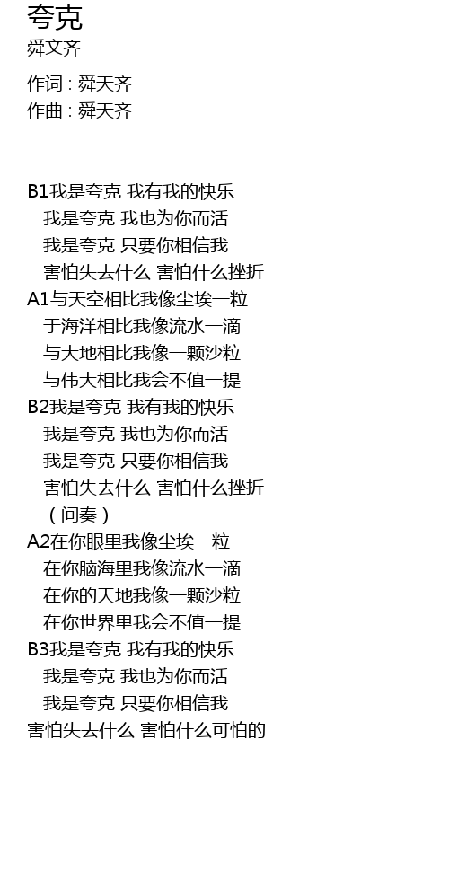| B3 wǒ shì kuā kè wǒ yǒu wǒ de kuài lè | |
