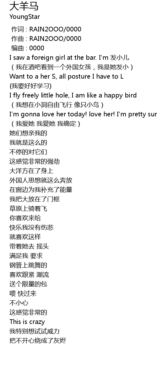 | [00:00.000] | 作词 : RAIN2OOO/0000 |