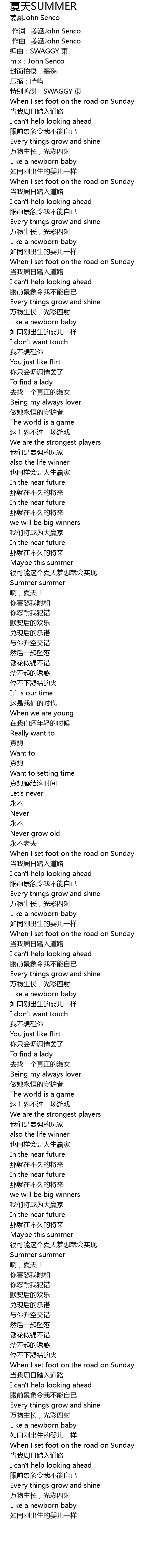 | [00:00.000] | 作词 : 姜涵John Senco |