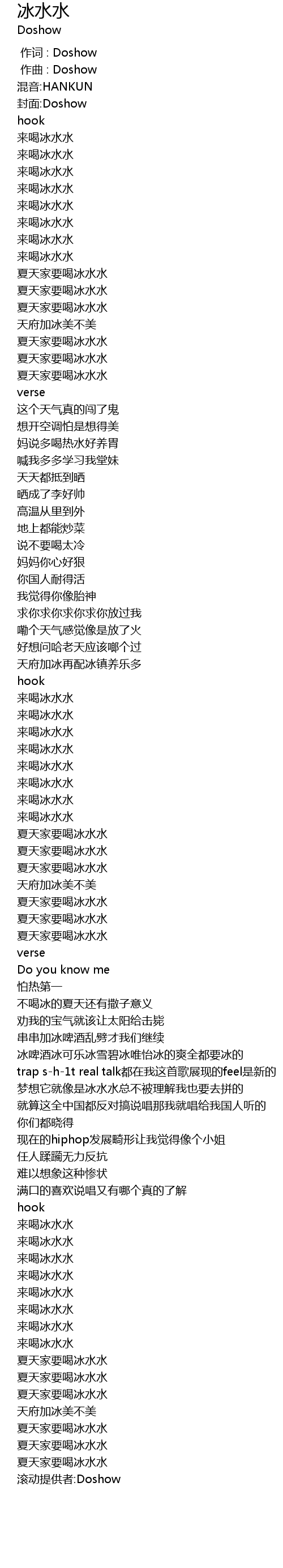 | [00:00.000] | 作词 : Doshow |