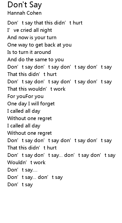 | Don' t say don' t say don' t say don' t say | |