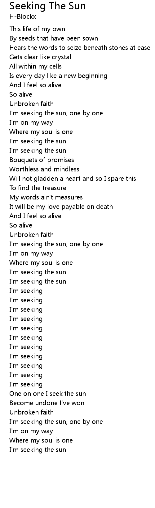 I'm seeking the sun |