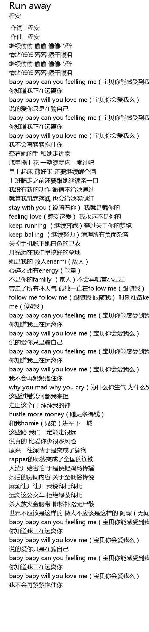 | [01:41.451] | baby baby will you love me(宝贝你会爱我么) |