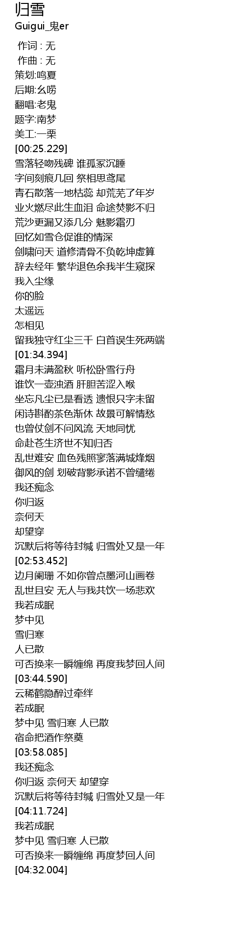 | [03:49.347] | 梦中见 雪归寒 人已散 |