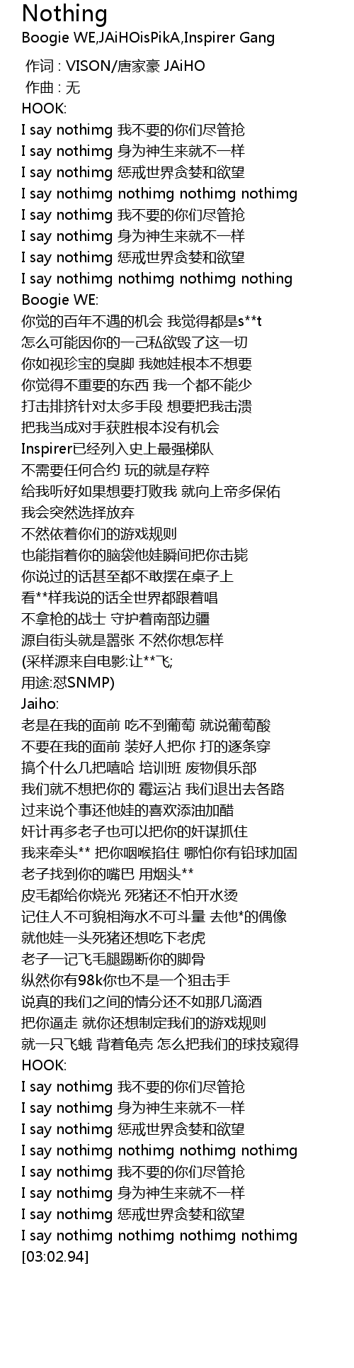 | [02:57.49] | I say nothimg nothimg nothimg nothimg |