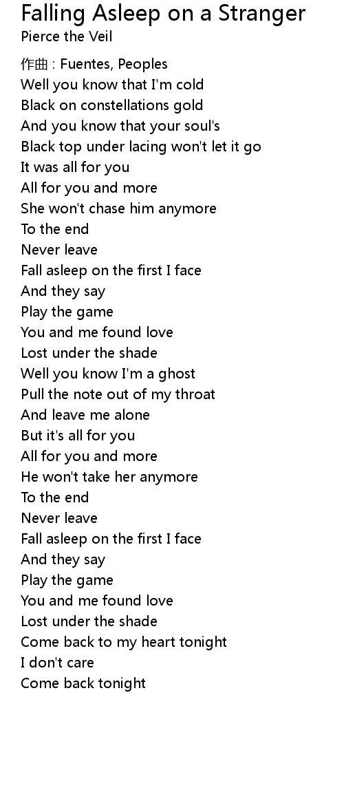 | Song | Falling Asleep on a Stranger |