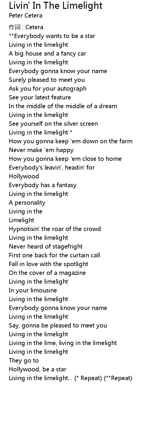 | Living in the limelight... Repeat Repeat |